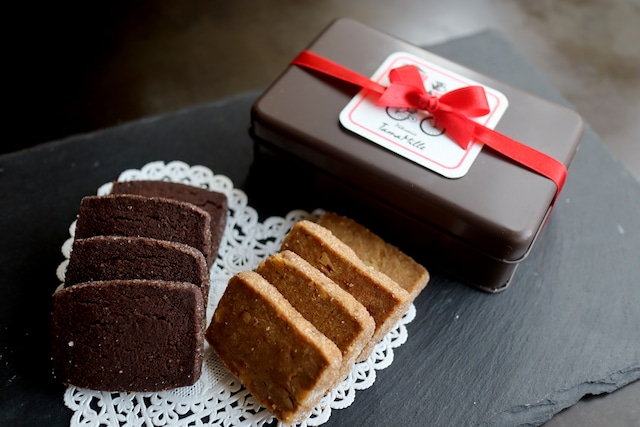 *バレンタイン&ホワイトデーでお配りプチギフトに! *フランス粉100%のエクリチュールのホロッサクッ感、発酵バターの上質な香りがお愉しみいただける3つのクッキーアソートです *クッキー好きなら間違いない3つのフレーバーを詰め合わせました。親しみやすい味わいなので、ちょっとしたプレゼントに最適です (簡易手提げご希望の場合は備考欄にご記入ください) ・ディアマン ダイアモンドの名の通り、 シンプルで印象的なバニラクッキー ・ディアマンショコラ 上質なココアを使用した濃厚なチョコクッキー ・マーブレ オレンジの花の水入りココアクッキーとバニラのコンビ ※おまとめご注文も承ります。別途お問合せ下さい 047(488)0302 金~月曜日 =================== 商品名)クッキーfan 商品コード)cf10 概要:種類)焼き菓子 数量)11枚入り 缶の外形)縦16.4cm×横4.2cm×高さ3.6cm 賞味期限)当店発送日より常温にて約3週間 ===================