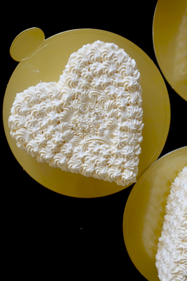 ※発送方法は「ヤマト宅急便」をご指定下さい(ヤマトクール便の料金設定となっております) ホワイトデー限定のハート型のバタークリームデコレーション。ひと手間かけた繊細なデコレーションで特別なひと時を! 懐かしくも新しいバニラ風味の自家製バタークリーム。。驚くほど口溶けが良くコクのある深い味わいですが、後味はさっぱりしています。甘いものが苦手な男性の方にも美味しい!と喜んでいただいております 冷蔵庫で2時間解凍後、常温で20分程度おいてから切り分けてお召し上がり下さい クリームがなめらかになり、より美味しくお召し上がりいただけます 贈り物にも最適なギフトボックスに入れてお届けします 【配送方法】ヤマトクール(冷凍)便 【消費期限】着日より冷蔵にて3日間 【原材料】 卵 乳製品 バター 砂糖 小麦粉 エバミルク 【種類】洋生菓子 【数量】4号(12㎝)同等サイズですが少し小さめです 【箱サイズ】縦18.5cm×横18.5cm×高さ7.1cm 【保存方法】要冷蔵 ※こちらの商品は手提げがついておりません。ギフト手提げは別途オプションにてお買い求め下さい