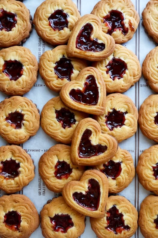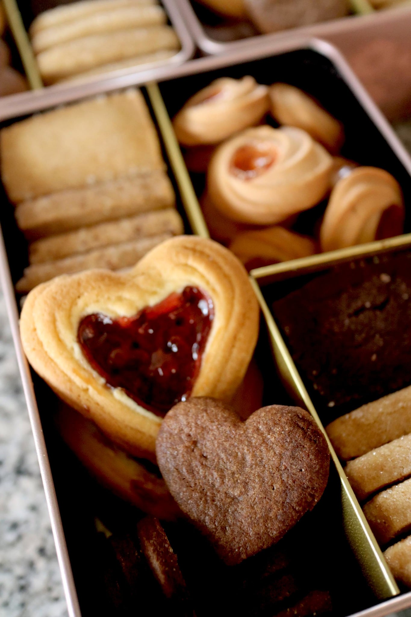バレンタイン&ホワイトデー限定、ハートのペキュロスとジャム木苺ジャムサブレをお入れしています